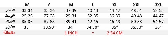 لوحة مقاسات ماركة بلوبيري النسائي ( جميع المقاسات بالانش):